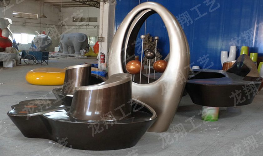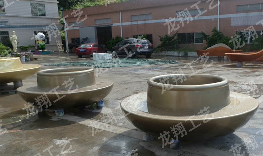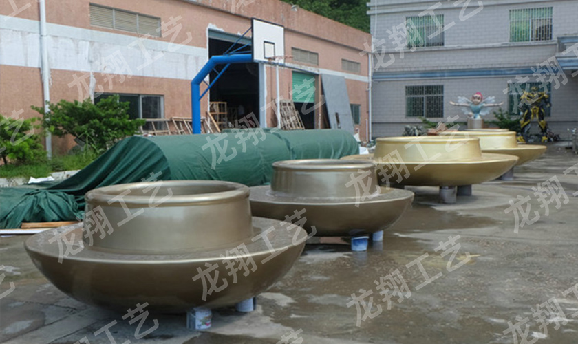 在玻璃钢(树脂纤维)制作的基础上,同时可按要求任意着色、打磨明暗、描金、仿古、仿铜、仿玉等特殊表面效果,并可以通过技术处理使作品表面呈现粗犷、细腻、龟裂、自然缝隙、风化等真石效果,产品表面效果有直接油漆处理出色,金箔、银箔、电镀、仿石、仿古制作。